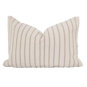 ... Show more The Cozy Prairie Linens Co. Woven Pinstripe Pillow Cover is designed for those who appreciate both style and comfort. Crafted with 100% thick woven cotton fabric, this pillow cover embodies a perfect blend of durability and breathability. Its textured fabric and elegant design make it an ideal addition to your home decor. The timeless off-white and natural pinstripe pattern effortlessly complements a variety of interior styles, from rustic farmhouse to modern chic.