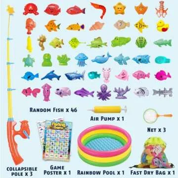 CozyBomB™ Magnetic Fishing Toys Game Set for Kids | Water Table Bathtub Kiddie Pool Party & Pole Rod Net, Plastic Floating Fish Toddler Color Ocean Sea Animals Birthday Age 3 4 5 6 Year