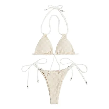 This chic bikini boasts a stylish plaid pattern and features tie sides and a tie back, which allows for a customizable fit that hugs your body in all the right places. The high-waisted bottom not only elevates your style but also offers a charming silhouette that enhances your waistline, giving you a confident edge to flaunt your figure with ease. Whether you prefer a cheeky cut or a more modest look, this bikini caters to various tastes, making it a versatile addition to your swimwear collection.