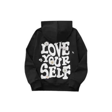 COZYEASE Girls' Letter Graphic Cute Hoodies Long Sleeve Pullover Hoodie Sweatshirt Black 11-12Y