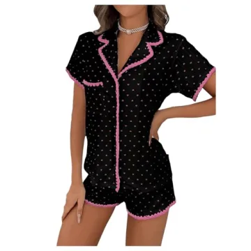 Show moreDiscover the ultimate comfort and style with the COZYEASE Women’s Silky Pajamas Set. Crafted with love from 100% high-stretch polyester, this 2-piece sleepwear set offers a luxurious feel that’s perfect for lounging around on lazy mornings or cozying up for a restful night. The delightful heart print adds a playful touch to the ensemble, while the short sleeves and button-down shirt design ensure you stay cool and fashionable. Whether you're enjoying a pajama party with friends or indulging in a relaxing evening at home, these pajamas are your go-to for comfort and style.