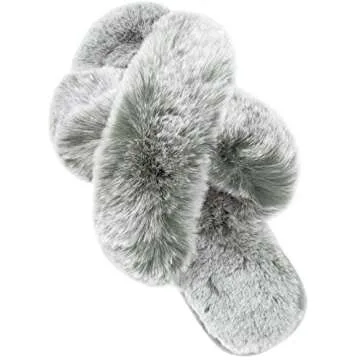 Cozyfurry Women’s Cross Band Slippers - Fuzzy Open Toe Indoor Footwear