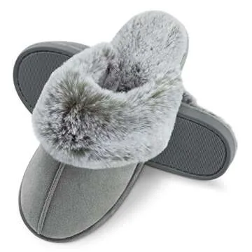 Cozyfurry Womens Slipper Fuzzy Fluffy House Slippers Faux Fur Cozy Warm Soft Indoor Shoes Memory Foam Anti-skid Rubber Sole Grey 7-8