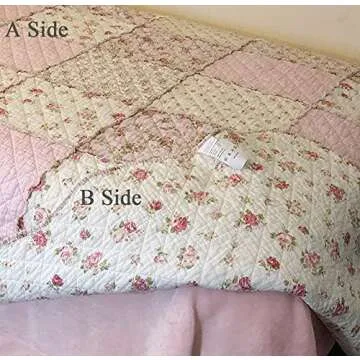 Cozyholy Original 100% Cotton Patchwork Quilt Twin Size Pink Floral Bedspread Coverlet Reversible Vintage Shabby Chic Quilted Throw Blanket Bed Quilt Cover for Couch Sofa