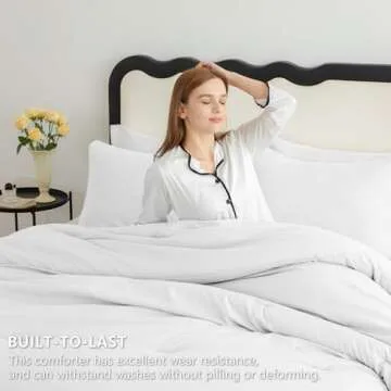 Show more Wrap yourself in ultimate comfort with this exquisite Queen Comforter Set, crafted from ultra-soft premium microfiber that feels heavenly against your skin. With a lightweight yet cloud-like filling, this comforter promises to envelop you in warmth without the bulk. Perfect for year-round use, this bedding set is not just about looking luxurious; it's designed to ensure you have an uninterrupted, restful sleep.