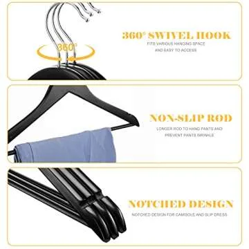 Cozymood Sturdy Wooden Hangers 20 Pack Durable & Slim Clothes Hanger with 360° Rotatable Hook Natural Finish & Notches Wood Hangers Premium Coat Hanger for Closet Clothes Hangers (Black)