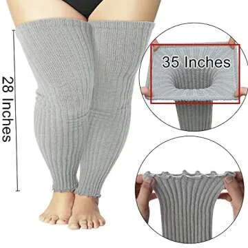 COZYOFFI Women's Plus Size Leg Warmers Knit Over Knee High Footless Socks for Thick Thighs(C04-Light Grey)
