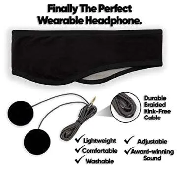 CozyPhones Sleep Headphones - Over Ear Headphones from Ultra Thin Cool Mesh Wired for Side Sleepers, Meditation, Running, Laptop, and Phone - Black