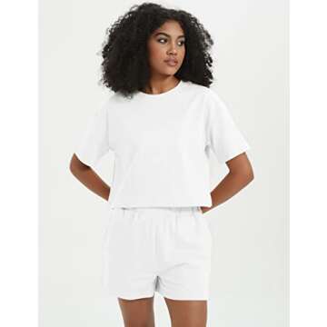 COZYPOIN Women Summer 2 Piece Outfits Short Sleeves Crop Top and Drawstring Waist Shorts Set Tracksuits(White-S)