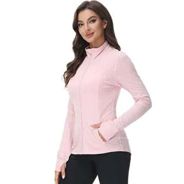 COZZIPLUS Women Zip Up Athletic Running Jacket Lightweight Workout Yoga Top with Thumb Holes and Pocket (Pink, M)