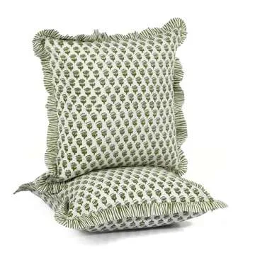 CPC Emerald Green Ruffle Throw Pillow Covers for Couch, 20x20 Inch Cotton Stripe Ruffle Couch Pillows for Living Room, Hidden 16 Inch Zipper Boho Pillow Case or Cute Outdoor Pillows