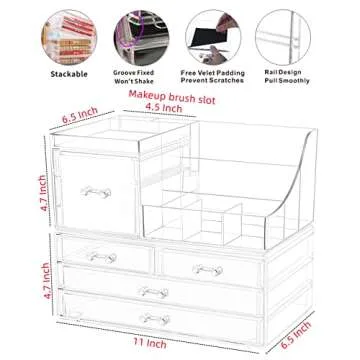 Cq acrylic 2 Pack Clear Make up Organizer Countertop,Stackable 5 Drawers Makeup Storage,Cute Vanity Organizers for dresser Hair Clip,Jewelry,Beauty Product Desk and Bathroom Organizers and Storage