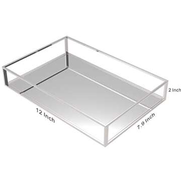 Show moreIntroducing the Cq Acrylic Decorative Tray, a stunning silver mirror tray designed to elevate your organization game! This versatile tray measures 12"x7.9"x2" and is perfect for tidying up your vanity, bathroom, or living room. Crafted from high-quality materials, its durability ensures it will last through daily use while adding a touch of glamour to any flat surface. The mirror finish not only reflects light beautifully but also provides a practical way to display your jewelry, perfumes, and beauty essentials. Whether you're an avid makeup lover or simply need a stylish place to keep your trinkets, this tray is an essential addition to your home.