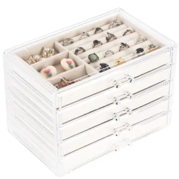 Stylish Cq Acrylic Earring Jewelry Organizer with 5 Removable Drawers