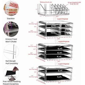 Cq acrylic Large 9 Tier Clear Acrylic Makeup Organizer Cosmetic Storage Cube Case with 10 Drawers-4 Piece Set