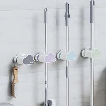 Show moreIntroducing the CQT Mop and Broom Holder Gripper, your ultimate solution for a clutter-free home! Say goodbye to messy corners and disorganized cleaning tools with this innovative, easy-to-use wall mount gripper. Designed in the shape of a cloud, this stylish and functional accessory not only adds a touch of charm to your decor but also keeps your mop and broom securely in place. Thanks to its strong adhesive backing, you can effortlessly mount this gripper on a variety of smooth surfaces including paint, wood, tile, and more, making it perfect for any room in your house.