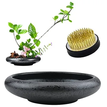 Show moreIntroducing the CRAFFANCY Flower Arrangement Supplies, your new go-to for elegant floral displays that are sure to impress! This exquisite deep round ceramic vase features a unique mottled black design, enhancing any home decor with its charming vintage aesthetic. Paired with a 5cm kenzan flower frog made from sturdy copper, this kit is not only beautiful but functional, making the art of ikebana accessible to everyone, from beginners to seasoned florists. The ceramic pot measures approximately 6.9 x 1.8 inches, providing ample space to showcase your favorite arrangements, while its durable construction ensures longevity and reliability.