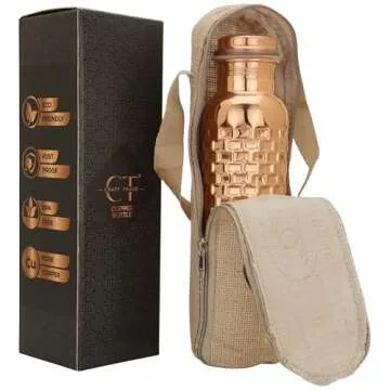 Craft Trade Diamond Pure Copper Bottle with Lid and Carry Bag for Drinking Water BPA Free Leak Proof Boosts Immunity, Supports Digestive & Liver Health, Ayurveda Inspired 34oz - 1 Litre Natural