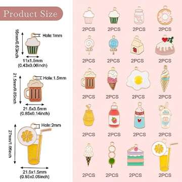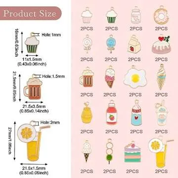 The set showcases assorted styles, reflecting various delights such as cake, ice cream, bubble tea, and more, making it a perfect choice for any themed project! Encased in a practical plastic box, these pendants are not only easy to use but also easy to store, ensuring that your DIY experience is as seamless as possible.