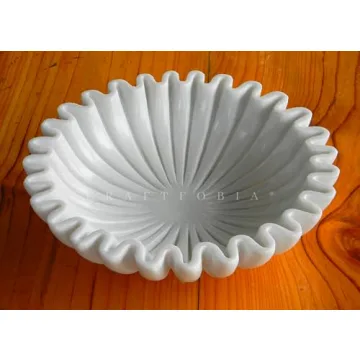 Show more Introducing an exquisite addition to your home decor - a stunning Decorative White Marble Bowl that beautifully combines timeless design with artisanal craftsmanship. Each bowl is hand-carved from high-quality white marble, giving it a unique touch that reflects the skill and dedication of talented artisans. With its elegant scalloped edges and a delicate flower pattern adorning the upper surface, this bowl captures the essence of antique charm, making it a versatile piece for any setting.
