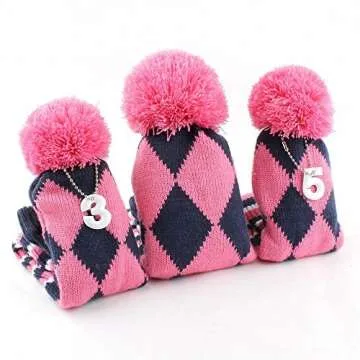 Show moreIntroducing the Craftsman Golf Knit Pom Pom 3pcs Headcover Set, a delightful nod to vintage golfing charm blended with contemporary functionality. This set features three meticulously crafted headcovers designed to fit your 1 driver, 3 wood, and 5 wood clubs. Adorned in a stunning navy, argyle, pink, and white color scheme, these headcovers don't just look stylish but also serve a significant purpose to protect your vital equipment on the course.