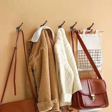 CRAFTSMAN ROAD Vintage Cast Iron Wall Hooks (Antique Brass Finish, Set of 4) - Rustic, Farmhouse Coat Hooks | Great for Coats, Bags, Towels, Hats | Classic Stout