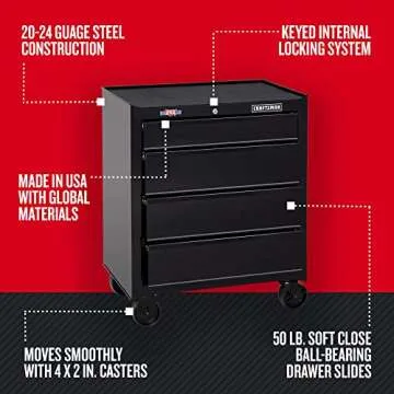 CRAFTSMAN Tool Chest with Drawer Liner Roll, 26-Inch, Rolling,, 4 Drawer, Black (CMST82765BK)