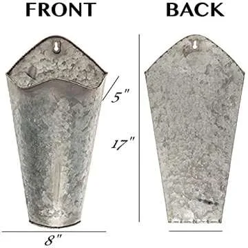 Show more Transform your living space into a charming retreat with the CraftyCrocodile Big Distressed Farmhouse Style Hanging Wall Vase Planters. These stunning vases feature an eye-catching antique finish, adding a rustic touch that enhances any decor style. Perfectly designed to hold faux flowers, air plants, succulents, or herbs, they allow you to showcase your creativity while elevating your home aesthetics. This set of two planters offers versatility and elegance, making it an ideal decor choice for any room.
