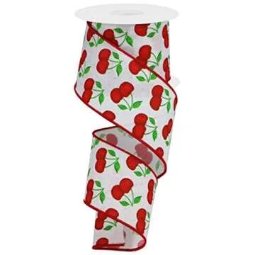 Show moreElevate your creative endeavors with the exquisite Craig Bachman 2.5" Cherries on Royal Ribbon. This elegant ribbon features a canvas base in a pure white hue, perfectly contrasted by vibrant red cherries adorning lush green stems. With an impressive length of 10 yards (30 feet) and a generous width of 2.5 inches, this ribbon is designed to meet all your decorative needs, whether for home décor, gifting, or crafting. Its wired edges ensure a secure hold and allow you to shape and manipulate the ribbon to create stunning bows that will leave a lasting impression.