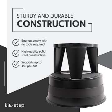 Show moreIntroducing the Cramer Kik Step Steel Step Stool, a perfect blend of durability and functionality designed to elevate your reach! Crafted from robust solid steel, this circular step stool comfortably supports up to 350 pounds and measures a convenient 16" x 16" x 14.5". Its seamless assembly requires no tools, allowing you to quickly set it up for immediate use. Whether you need to grab items from high shelves or access ceiling fixtures, its sleek black finish and classic mid-century design will complement any space while serving a practical purpose.