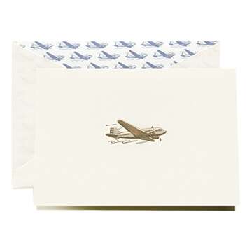 Crane & Co. Engraved Vintage Airplane Note Set - Elegant Stationery for Enthusiasts