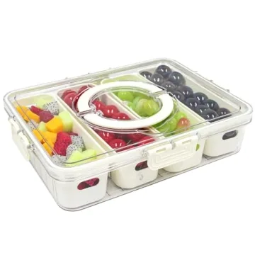 Show more Introducing the **Cranviech Divided Serving Tray Snack Platter**, your ultimate solution for portable food storage and stylish serving! Designed with the highest food-grade standards, this innovative snack box features four cleverly designed compartments, allowing you to store an assortment of snacks or meal prep essentials in one convenient container. Whether you’re heading to a picnic, a party, or just want a beautiful way to present snacks at home, this versatile tray ensures your food stays fresh and delicious!