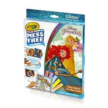 Show more Unleash the magic of creativity with the Crayola 75-2445 Color Wonder Disney Princess Glitter Coloring Pages & Markers Set, the ultimate art gift designed for kids aged 3 and up. This enchanting set features 12 dazzling, glitter-infused coloring pages showcasing beloved Disney princesses like Belle, Mulan, Jasmine, and Rapunzel. Unlike traditional glitter, the sparkle effects are already embedded within the high-quality paper, providing all the whimsy without the mess. Your little artist can dive into a world of colorful adventure while creating masterpieces that light up with shimmering brilliance!