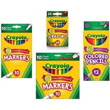 Crayola Crayons (24 Count), Colored Pencils in Assorted Colors (12 Count), (10ct) Classic Fine Line Markers, and (10ct) Classic Broad Line Markers Holiday Bundle