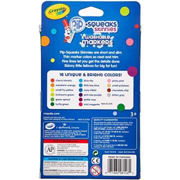 Show more Introducing the ultimate tool for budding artists and crafters—washable miniature size markers specially designed for little hands! These delightful markers are safe, non-toxic, and perfect for young creators eager to explore their artistic sides. With vibrant colors that ignite imagination, children will love using them for a variety of art and craft projects, whether at home or in school. Crafted for ease of use, these markers provide an excellent grip for tiny fingers, allowing for hours of creative play without fatigue.