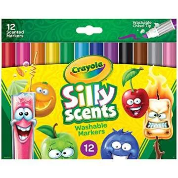 Show moreBring creativity to life with the delightful Crayola Silly Scents Scented Markers! This vibrant collection features an exciting selection of 12 unique markers, each infused with its own delightful aroma, perfect for inspiring artistic expression in kids of all ages. Imagine the joy of using a cherry scented marker for a sunny sky, or the sweet scent of cotton candy while coloring a fluffy cloud! These markers are designed to turn any mundane coloring session into a delightful olfactory experience that keeps smiles on faces and sparks the imagination. Whether it's the zesty aroma of orange or the comforting notes of marshmallow, there's a scent for every child’s mood!