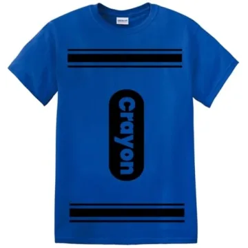 Available in a variety of fun colors and sizes, including youth and women's options, our t-shirt stands out with its bright graphics that add a pop of personality to any outfit. It has quickly become the go-to choice for Halloween costumes, particularly as a crayon shirt that provides a fun twist for family-themed costumes. Plus, this t-shirt is easy to care for; just machine wash with like colors, and it will remain crack-resistant, fade-proof, and ready to wear again and again.