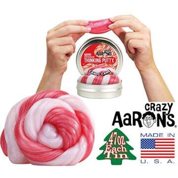 ... Show more Introducing the unique and captivating world of Aaron's Thinking Putty—an innovative and delightfully versatile sensory product that offers endless fun for all ages. This non-sticky, mess-free putty provides a fantastic alternative to conventional slime, ensuring a clean playtime experience. With a variety of vibrant colors and textures, including the seasonal favorite candy cane, Aaron's Thinking Putty is not just a toy; it's a multi-functional tool for creativity, stress relief, and focus enhancement.