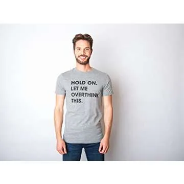 Crazy Dog Men's T Shirt Hold On Let Me Overthink This Funny Sarcastic Anti Social Introvert Shirt Nerdy Anxiety Humor Homebody Graphic Novelty Vintage Fit Geeky Adult Tee (Heather Black) - M