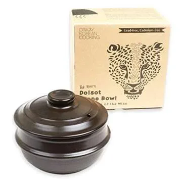 Show moreIntroducing the Crazy Korean Cooking Dolsot Korean Stone Bowl with Lid (No Trivet) - the ultimate kitchen companion for those who cherish authentic Korean cuisine. This premium stoneware bowl is crafted from fine clay and features a twice glaze-fired natural finish, expertly designed to withstand the heat of stovetops, ovens, and microwaves. With its compact dimensions of 5 3/4 inches in diameter and 3 3/8 inches in height, this bowl is a perfect fit for individual portions, making every meal feel special.