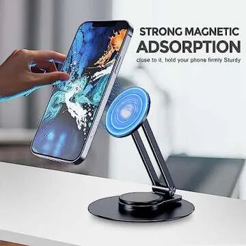 Show more Introducing the CreaDream Magnetic Phone Stand for Desk, your ultimate desk accessory designed to elevate your smartphone experience! Constructed from high-quality aluminum alloy, this elegant stand not only boasts a sleek and modern aesthetic but is equipped with powerful magnets, ensuring that your phone stays securely in place. The innovative design allows for easy auto-alignment without the need for metal plates or attachments, making it an ideal partner for your workspace. Whether you’re in a meeting, watching videos, or attending video calls, trust that your phone will remain stable and accessible at all times.