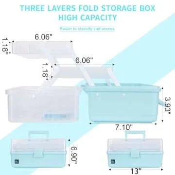 Creahaus 13 inch Art Craft Organizer Storage Box with 3 Layer, Multipurpose Plastic Tool Box with Handle for Sewing, Art Supply, Medicine, Nail, Hair Accessories (Blue)