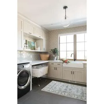 Cream Blue Oushak Rug, Modern Small Rugs, Vintage, Turkish, Eclectic, Floral, Pastel, Washable, Door Mat, Doormat for Indoor Entrance, Entryway, Kitchen, Bathroom, Bedroom, Laundry, 2'x3'