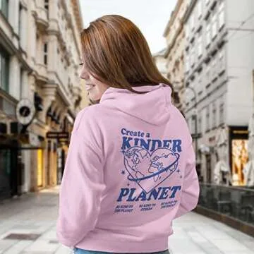 Show more Embrace a blend of comfort and style with this stunning graphic hoodie designed specifically for the trendy woman. With its exquisite 2YK style, this hoodie features a captivating graphic print and chic wording on the back, making it a statement piece in any wardrobe. Crafted from high-quality materials, including air-jet yarn and a mix of cotton and polyester, it offers both durability and softness for all-day wear. Whether you're headed out for a casual lunch, relaxing at home, or enjoying a hiking adventure, this hoodie is the perfect companion.