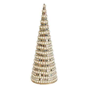 Creative Co-Op 12" Faux Pearl & Glass Bead Mosaic Cone Tree, Silver