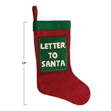 Creative Co-Op 19" H Wool Felt Stocking w/Applique Pocket Letter to Santa, Red & Green Textiles, Multi