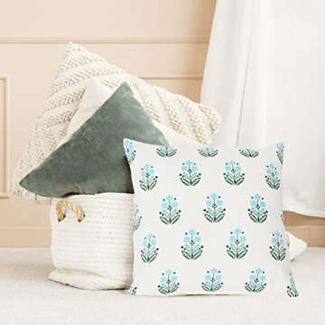 Show moreIntroducing an exquisite addition to your home decor – a stunning white cotton pillow adorned with a vibrant blue and green floral block print. This modern twist on a classically designed accessory will captivate your senses and effortlessly enhance the aesthetic of any room. Crafted from durable woven cotton, it offers both beauty and functionality.