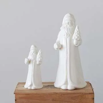 Show moreBring a touch of whimsical charm to your winter celebrations with the Creative Co-Op Stoneware Santa. Measuring at 4.5 inches long by 4.25 inches wide and an impressive 10 inches high, this beautifully crafted white stoneware figurine perfectly blends traditional holiday spirit with modern design. From the exquisite Christmas Market Collection, this Santa is more than just a decorative piece; it's a delightful expression of joy and festivity that will enchant your home throughout the holiday season.