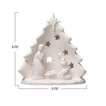 Creative Co-Op 5-3/4"L x 4" W x 5-3/4"H Stoneware Holy Family w/Tree & Cut-Outs, White