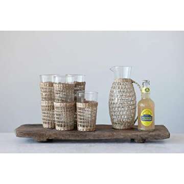 Show moreIntroducing the Creative Co-Op 64 oz. Glass Seagrass Weave Jacket & Handle Pitcher, a stunning blend of functionality and style, perfect for anyone who appreciates elegant home decor. This beautifully designed pitcher features a charming seagrass weave jacket that not only provides a unique aesthetic but also ensures a firm grip with its handle, making it an ideal accessory for any gathering. Whether you're serving refreshing iced tea or chilled water, its 64 oz. capacity is just right for entertaining friends and family. At a compact size of 2.75"L x 4.75"W x 9.5"H, its sleek silhouette adds a touch of sophistication to your dining table or coffee station.